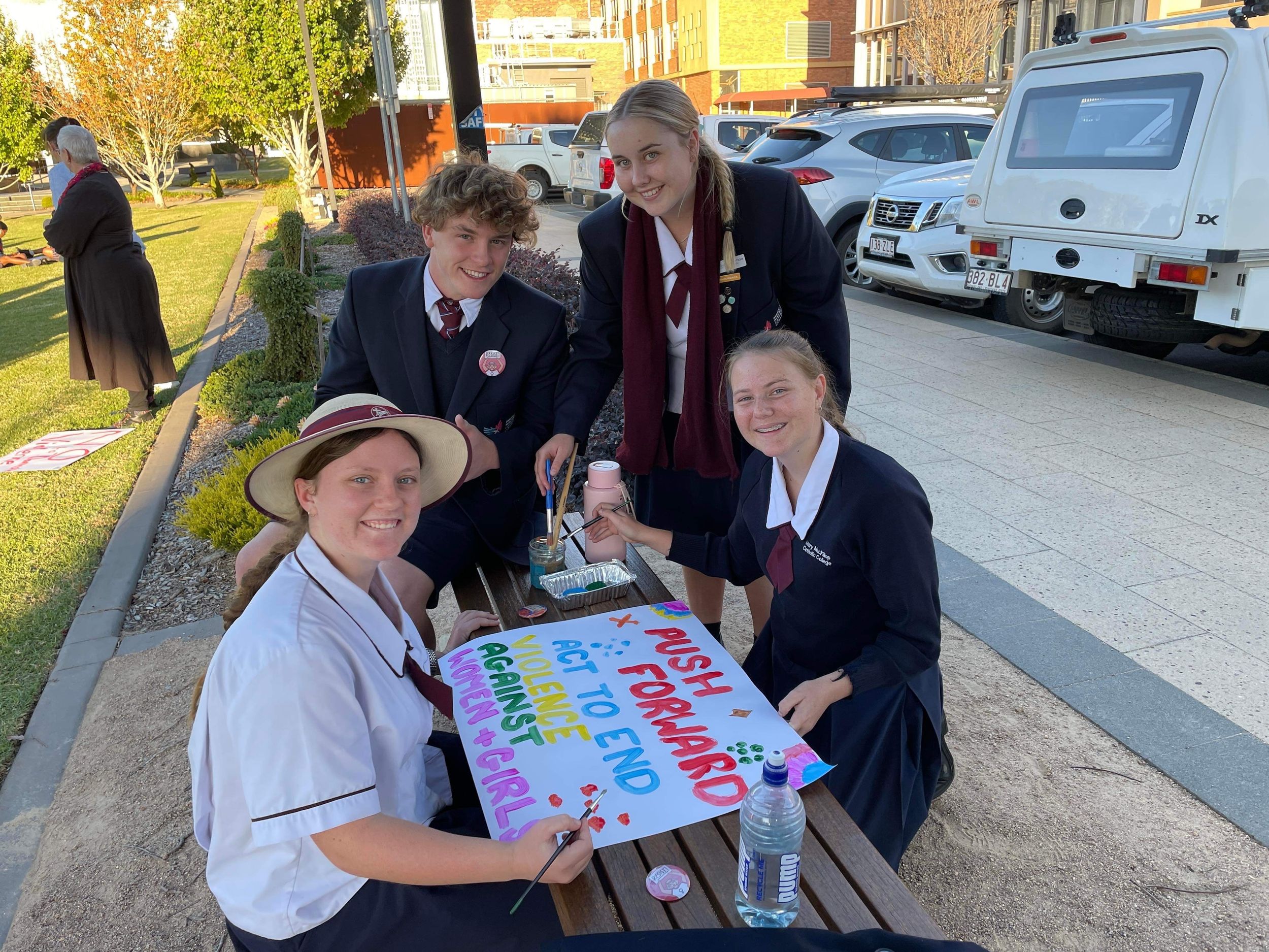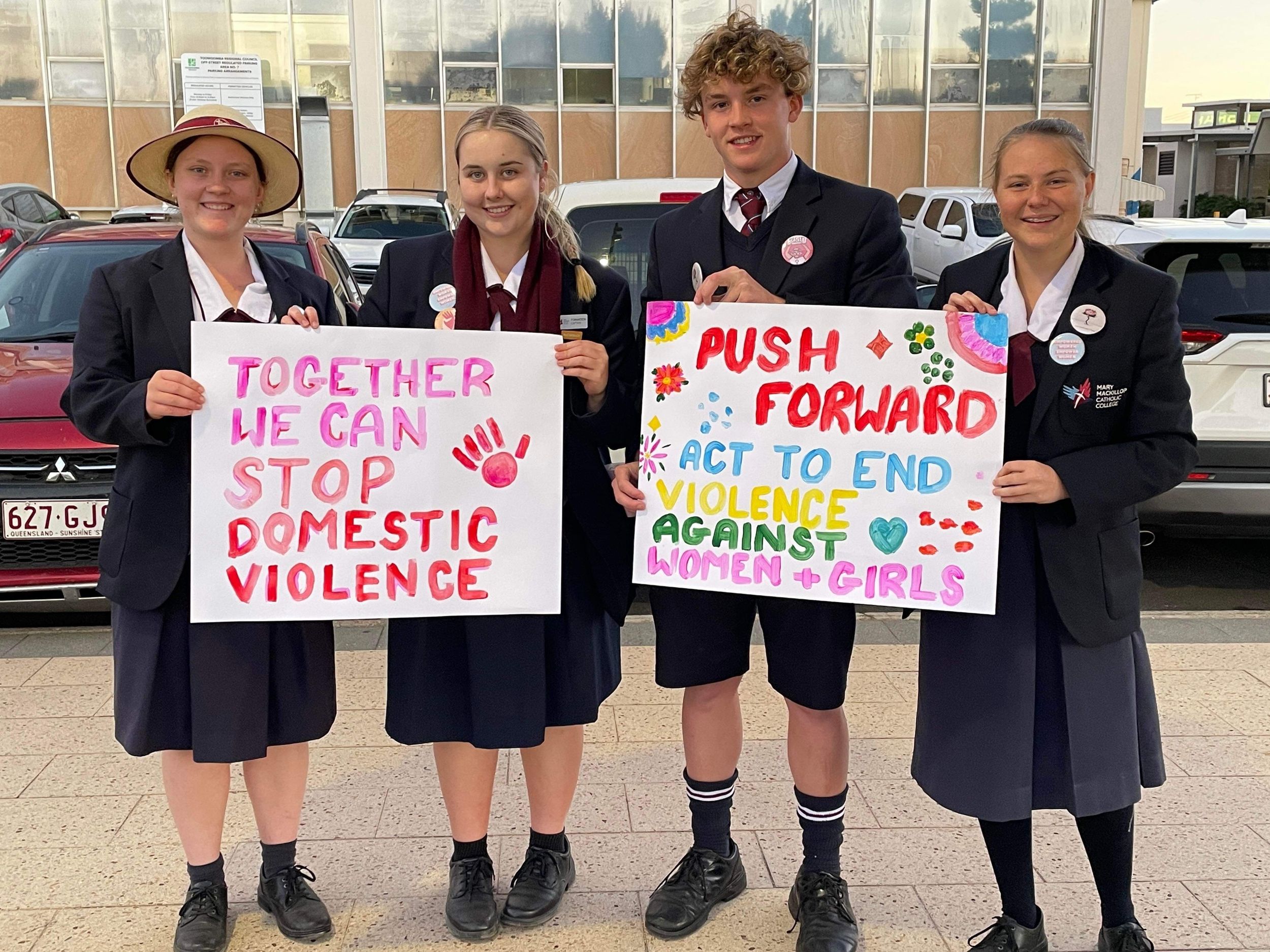 As a Catholic College in the Josephite tradition, it is important that our students do as Mary MacKillop did and seek out “the poorest and most neglected parts of God’s vineyard.” By standing in solidarity with students from other schools and the Toowoomba community to say "No!" to domestic violence, Elise, Jezziah, Rachel and Chelsea have promoted the dignity of the human person. To raise awareness of this issue with the MMCC community, these students spoke on Senior assembly on Friday to share their experience.
