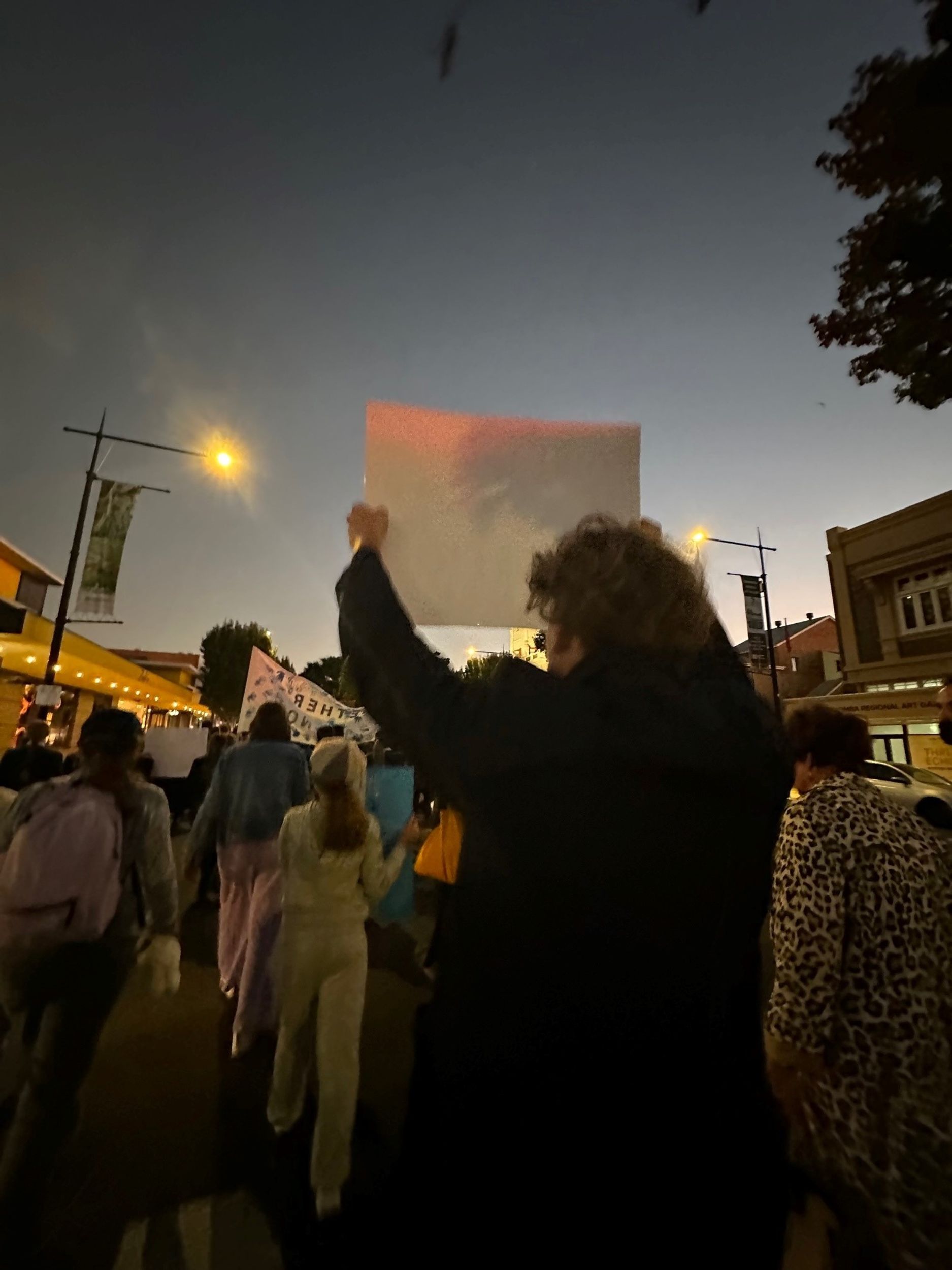 Rachel Williams: At around 5:30pm, we all gathered on Ruthven Street where we marched alongside police officers, community members and survivors saying no to domestic violence. Once we finished the march we met back on the green where we heard a survivor speak about her experience and heard shocking statistics from a policeman stating that everyday police respond to 270 domestic violence calls across Queensland.