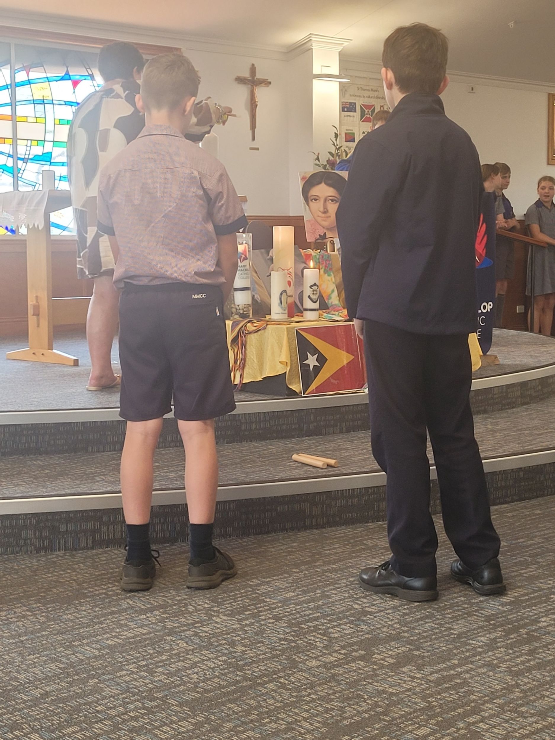 Some Year 5 students represented our College at the Mission Month liturgy at St Thomas More's Parish church. These students were part of the liturgy involving themselves in reading, placing our College candle in the sacred space, and accepting a small gift from the organisers - a mission candle and mission rosary beads. I also know that other activities have been occurring around the College as well.